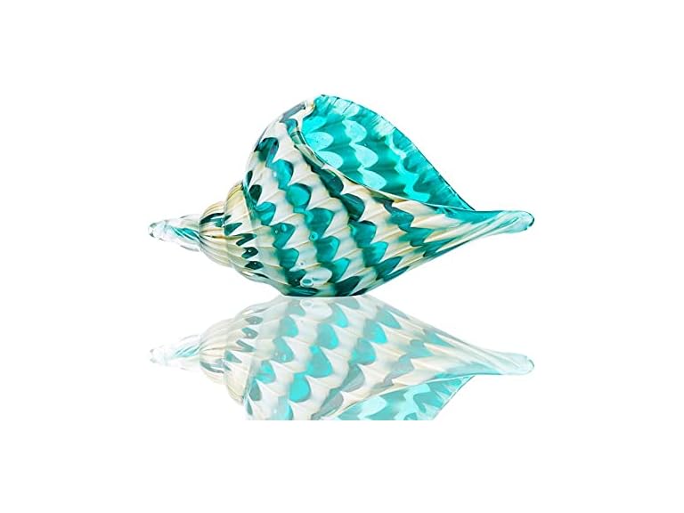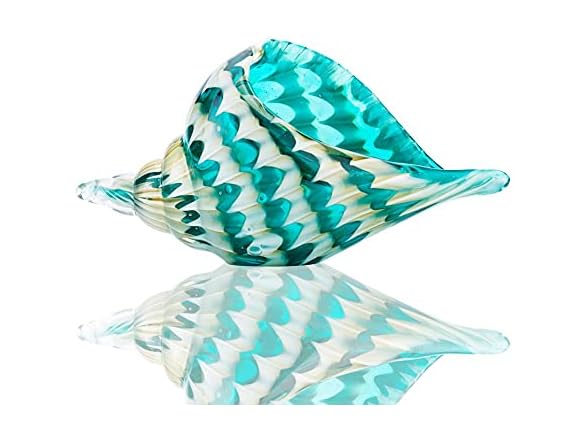 - (1) Crystal Blue Pattern Shell Sculpture Hand Blown Glass Conch Statue