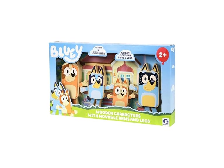 - Wooden Character Figures: Bring home the fun of Bluey to recreate memorable moments from the show with our Bluey toy playset; this Bluey figurines pack includes four Bluey and family character figures ready for every playtime adventure