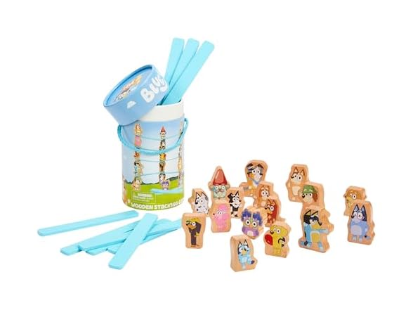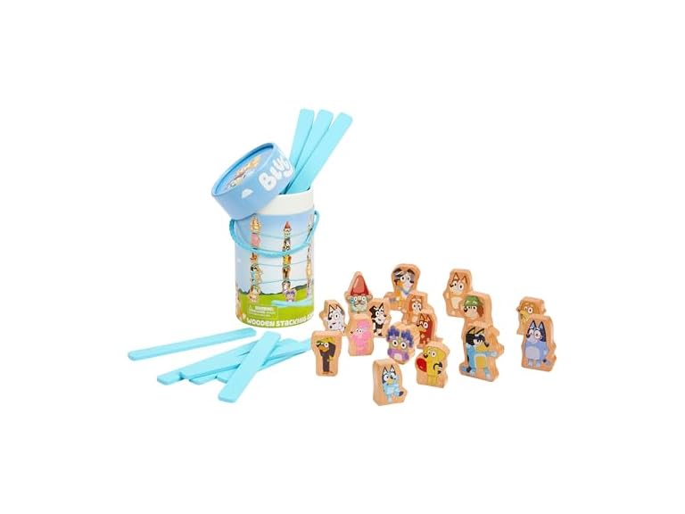 - Bluey Stacking Game – Spin, Balance & Play with 15 Fun Character Pieces & Sticks, Exciting Wooden Stacking Game for Kids, Toddlers & Families Ages 3+