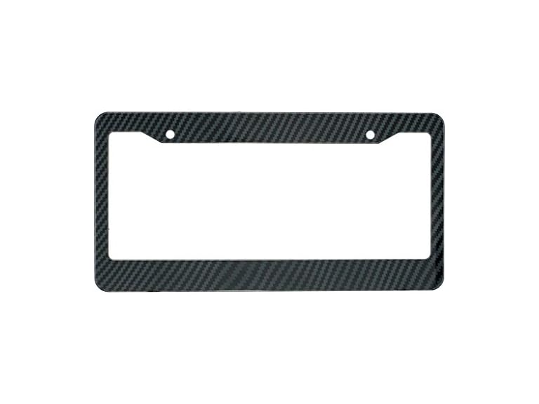 - Set of 1 Rust Free Plastic Frame and Rear Secure Tabs in Carbon Fiber Print (Not Real Carbon Fiber)