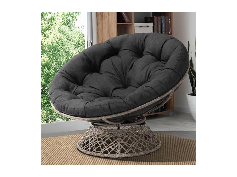 - VERSATILE WICKER PAPASAN CHAIR: Our large papasan chair, with its rounded shape and extra thick cushion, adds a cozy inviting space to relax whether you're sitting or curling up; The chair's elegant design complements any room decor, the suitable addition to your living room, bedroom, library or leisure lounge