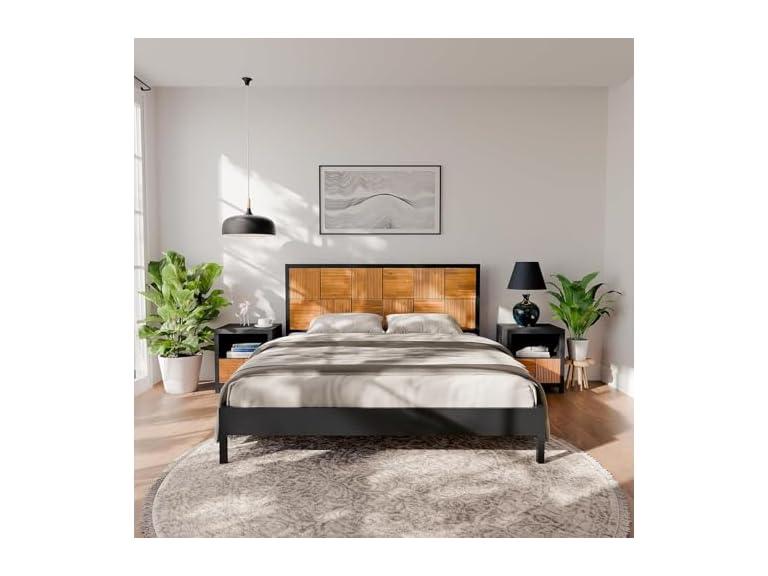 - SIMPLE ASSEMBLY FOR BED FRAME WITH HEADBOARD: Setting up our king size bed is a breeze, with all components, tools, and manuals included in one box; Only two people are needed to assemble the stylish mid-century platform piece effortlessly