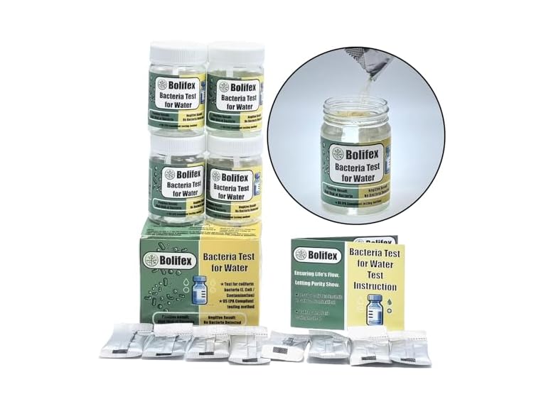 - Bolifex Upgraded Coliform Bacteria Water Test Kit, Water Bacteria Test Kit for Home Tap and Well 8 Pouches 4 Vials