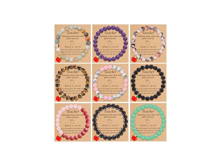 - (1) BOMAIL 9PCS Teacher Appreciation Bracelet Gifts for Women Men 8mm Natural Stone Bracelet Teacher Blessing Card Bracelets Thank You Bracelets Set