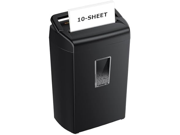 - (1) Bonsaii 10-Sheet Cross Cut Paper Shredder, 5.5 Gal Home Office Heavy Duty Shredder for Credit Card, Staple, Clip with Transparent Window(C209-D)