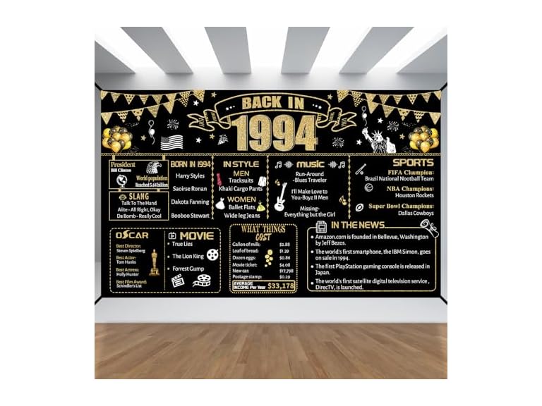 - (1) Joycard 31st Decorative Cloth for Women or Men, Birthday Banner With Holes, Built-in White Ribbon 1994 31st Year for Her Him Old Happy Birthday Banner, Outdoor,Indoor Bday Background Decor