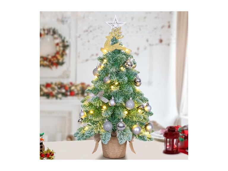 - 【Adorable 24" Christmas Tree】Featuring lifelike apperance, plenty of branches, gorgeous snow flake, rich ornaments, this small Christmas tree will surely brings a sense of nature and a cozy holiday atmosphere, making your holiday decorations charming and eyes-catching. This 24 inch Christmas tree is a space-saving and cost-effective way to bring more holiday cheer to your space, especially in small living areas and apartments. Small tree but big joy!