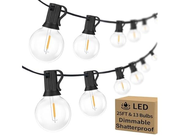 - (1) Bosceos 25FT Outdoor G40 LED Globe String Lights Dimmable Waterproof Shatterproof Light Strings with 13 Bulbs Connectable