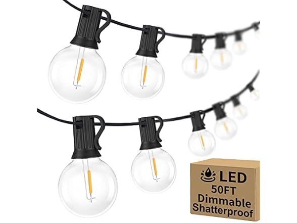 - (1) Bosceos 50FT Outdoor G40 LED Globe String Lights Dimmable Waterproof Shatterproof Light Strings with 25 Bulbs Connectable Commercial