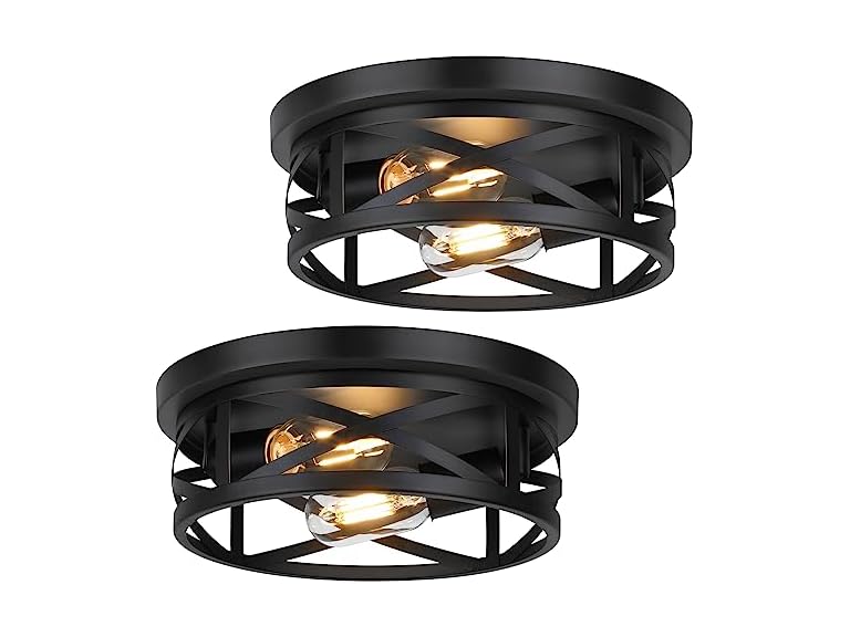 - Wide Applications: Our black flush mount light fixtures feature a unique X-shaped metal cage design that blends the industrial, modern, and farmhouse styles seamlessly. They are a perfect addition to a wide range of indoor spaces, including kitchens, bedrooms, bathrooms, living rooms, dining rooms, hallways, entryways, stairways, porches, children's rooms, attics, and any other spaces you like.