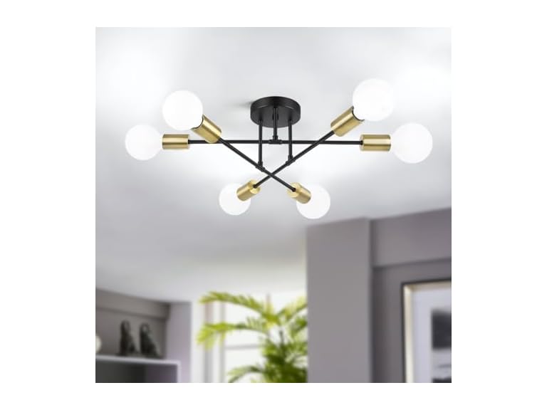 - Modern Sputnik Chandelier Decor your House: This semi flush mount ceiling light comes with sputnik style and modern geometric shape, combining the style of modern and retro. And this modern ceiling lighting fits any home decor style, creating a comfortable and modern ambiance in your house. In addition, it is an ideal decorative lighting fixture for bedroom, dining room, living room, hallway, kitchen, beauty salon, bar, coffee house, etc.