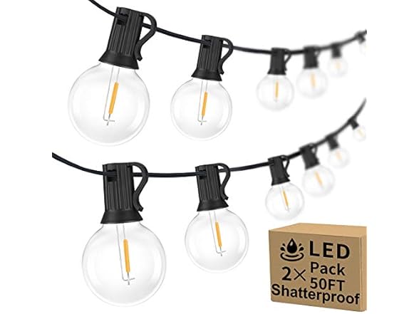 - (1) Bosceos 50FT Outdoor G40 LED Globe String Lights, 2 Pack
