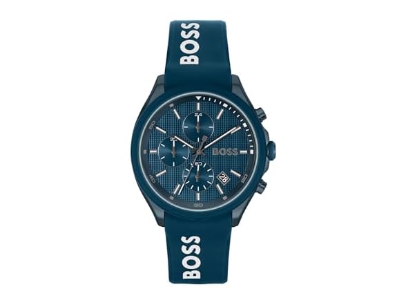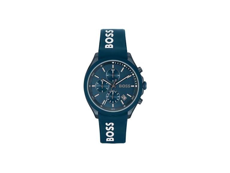 - For the Sporty Look: BOSS Velocity is a precise sport chronograph with a sleek professional attitude supported by simple blue silicone and blue ion plated stainless steel.