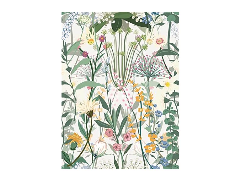 - (1 roll) RANRAN Vintage Floral Peel and Stick Wallpaper Bouquet Botanical Floral White for Bedroom Furniture Paper Removable Wall Decorations 17.7in x 118in, 14.5 Square Ft/Roll