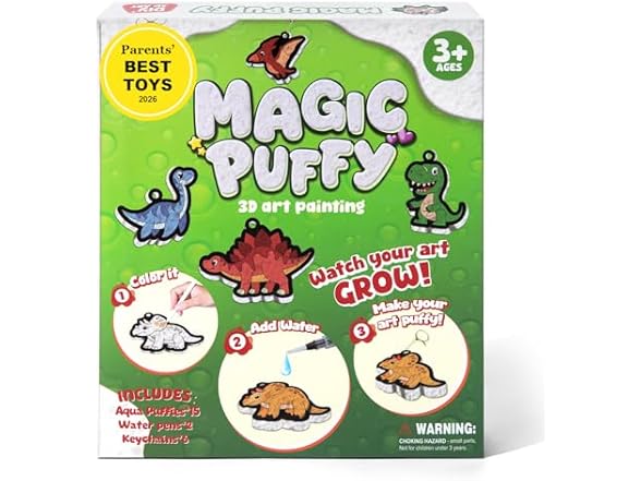 - 【Magical Aqua Puffs That Pop to Life】Experience the magic of 3D art that puffs to life! Just color in your child’s favorite dinosaurs, sea creatures, and Easter fun designs, then add water with the special pen. Instantly, creations expand into adorable 3D masterpieces—no glue or mess, just pure, puffy joy in minutes. Perfect for inspiring creativity in kids aged 4 to 10.