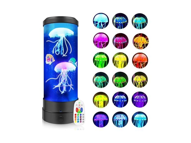 - ✨ 【17 Colors & 4 Lighting Modes】: Our jellyfish lamp features a captivating array of 17 stunning color choices. The enchantment extends beyond the aquatic dance. With a simple button press, you can control the spectrum. From soothing blues to lively reds, create the perfect atmosphere for any mood and occasion with this table lamp.
