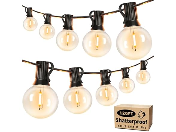 - (1) Brightever 120ft Outdoor G40 LED Globe String Lights Dimmable Waterproof Shatterproof Light Strings with 60+2 Bulbs Connectable Commercial Hanging Lights for Patio House Backyard Balcony