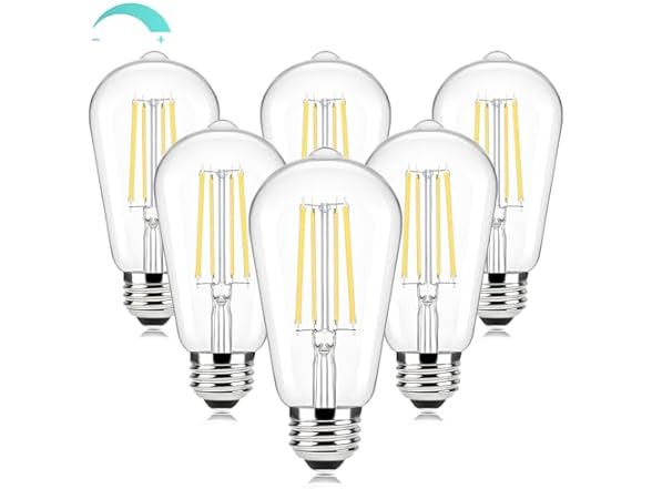 In the Box: (1) Brightever Dimmable LED Light Bulbs 60W Equivalent, 4000K Cool White Edison Light Bulb, 7W, 850LM Vintage E26 Base Bulb, 90+CRI, ST58 Clear Glass Antique LED Filament Bulbs for Bathroom, 6-Pack