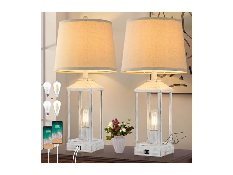 - Convenient USB Charging Ports: Each farmhouse table lamp is equipped with dual USB charging ports, allowing you to charge multiple smart devices simultaneously without searching for additional sockets nearby. Importantly, the USB ports will still work normally no matter whether vintage nightstand lamp set of 2 is turned on or off. This white elegant lamp with USB ports not only makes your life more convenient, but also is ideal for using on a nightstand to minimize clutter on the wall charger