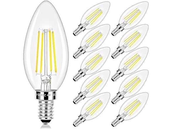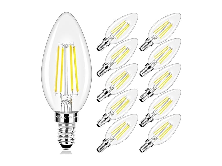 - Wonderful Amount and Beautiful Lights: This LED candelabra bulbs set is available in 10 packs to meet your needs. These dimmable bulbs could provide 470 Lumen super bright lighting and 5000K daylight white glow to decorate your room perfectly.