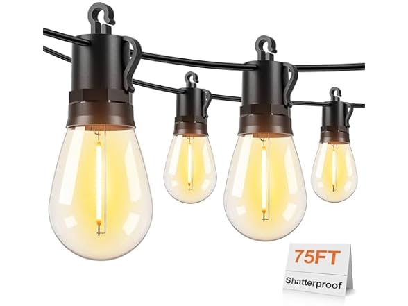 - (1) Brightever LED Outdoor String Lights, 75FT Patio Lights with 26 S14 Shatterproof LED Bulbs, Commercial Grade Waterproof String Lights for Outside, 2700K Dimmable Outdoor Lighting for Patio, Camping