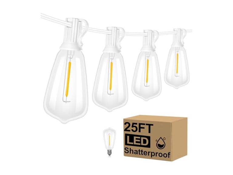 - 【Higher Quality and Lower Costs】- These 25ft extra-long outdoor string lights are equipped with our upgraded heavy-duty wires and 13 shatterproof Edison bulbs, which can be easily connected up to 60 strands. You can place them in a larger area without worrying about length and frequent replacements. With a lifespan of over 30,000 hours, our energy-saving string lights will not only provide brighter lighting but also cut down on your electricity bills by 90% compared to incandescent ones.