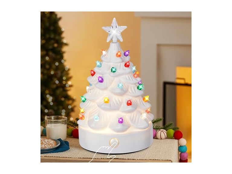 - Unbreakable & Dazzling Beaded Glow - Say goodbye to fragile ceramic trees! Made from drop-resistant resin, these vintage trees feature multi-color plastic gems that channel embedded LED lights to create a dazzling kaleidoscope effect. They cast a magical, festive glow throughout any room