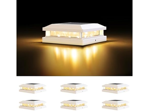 - SHINING LIGHT EFFECT & BRIGHTER ILLUMINATION: Featuring acrylic panels on all four sides, our solar post cap lights are more durable than glass shade. Inside the panels, it comes with beautiful sequins that will shine like diamonds when it is on. Deeper inside, the 4x4 post solar lights contain 16 LED beads and a brightness of 30 lumens, which makes the beautiful light effects even more dazzling, providing aesthetically pleasing lighting from dusk to dawn