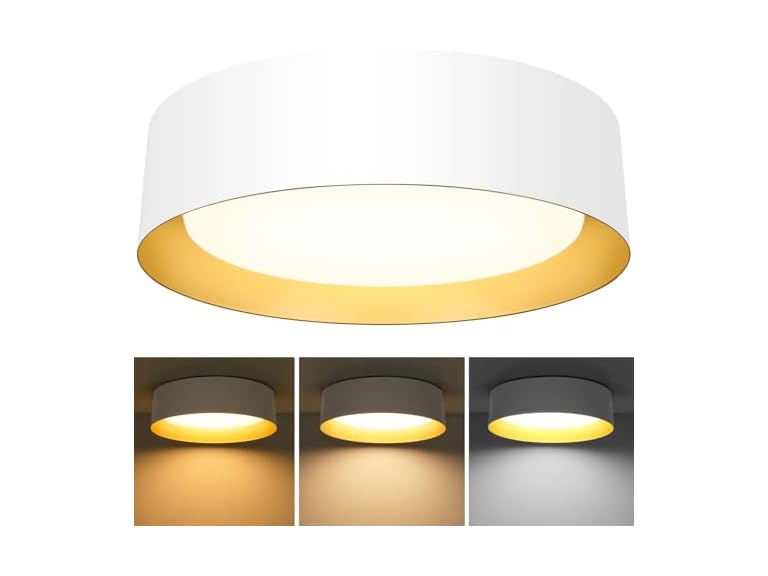 - šćModern & Minimalism DesignćFeaturing white round frame and light gold interior, this contemporary ceiling light plays a finishing touch effect for your room even when it's off. The 3.8-inch thickness is ideal for low ceilings, giving you a better view of your space while keeping it cleaner and crisper.