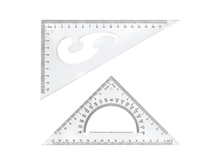 - 45 degree ruler measurement: 11.5cm and 17cm,30/60 degree ruler measurement: 11.5cm and 18cm.