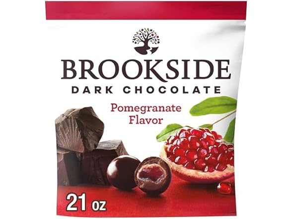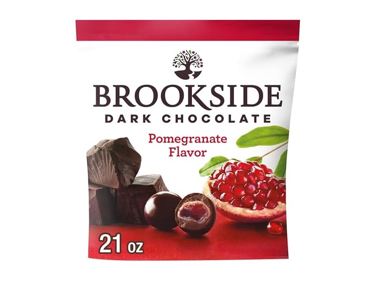 - Contains one (1) 21-ounce bag of BROOKSIDE Dark Chocolate with Pomegranate Fruit Flavored Centers Snacking Chocolate