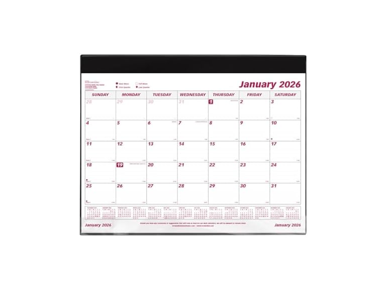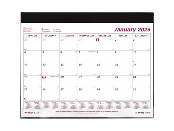 - VERSATILE | The Brownline Monthly Desk Pad Calendar spans 12 months, January to December 2026. One month per sheet, one block per day (Sunday-Saturday) for straightforward planning. English.
