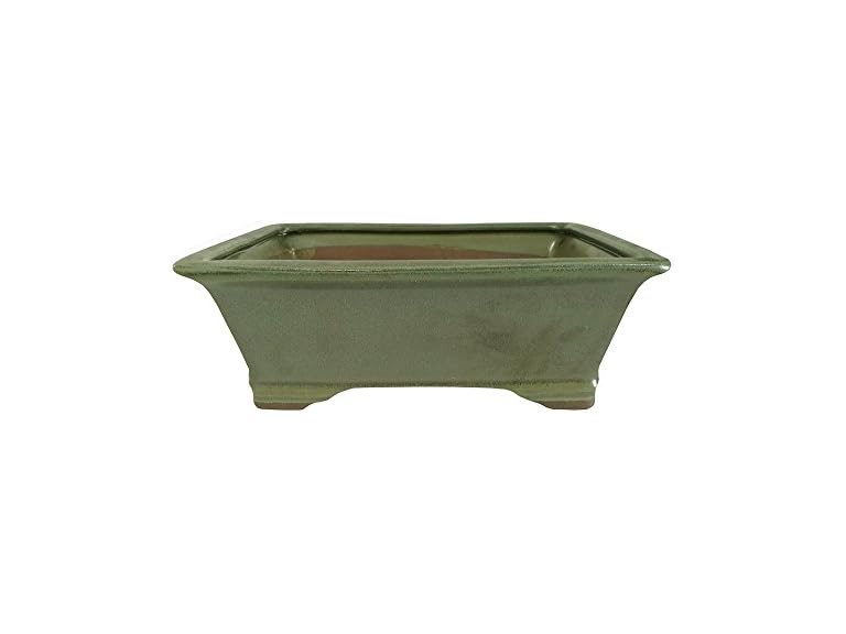 - Brussel's 8" Rectangle Bonsai Glazed Ceramic Pot (Medium, Sesame Green)