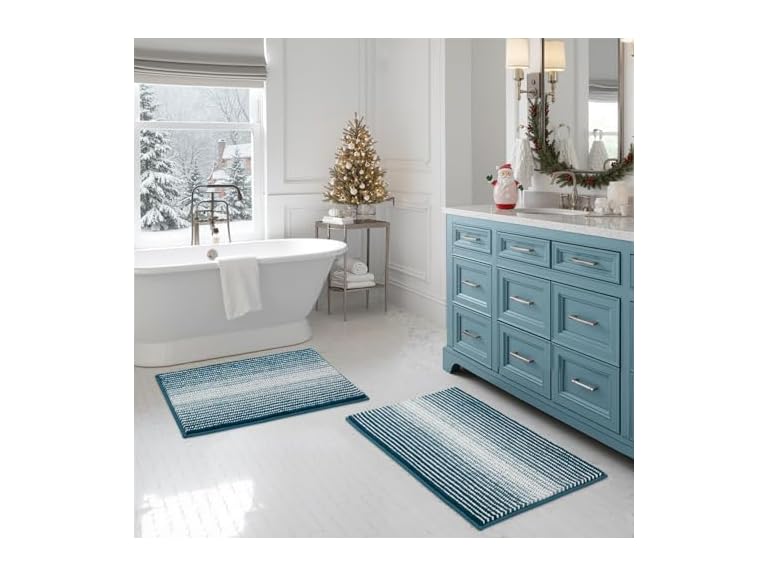 - 【EXTRA ABSORBENT BATHROOM RUG】: The luxury performance chenille microfibers can quickly absorb moisture from your feet when you step out of the bath or shower, and save your floors from dripping water, and dries quickly, making your feet feel the ultimate luxury enjoyment