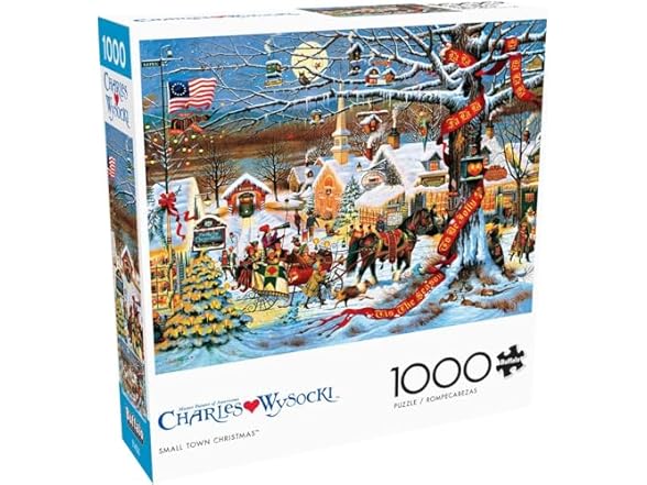 - (1) Buffalo Games - 1000 Piece Jigsaw Puzzle - Chrarles Wysocki Holiday Small Town Christmas - Challenging Holiday Scene Puzzles for Families and Adults