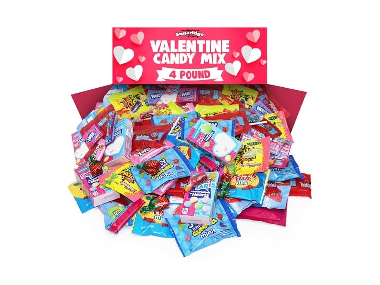 - 4 Pound Bulk Candy Assortment - This value-size Valentine’s candy variety pack includes a full 4 pounds of individually wrapped candies, making it ideal for large gatherings, school events, office celebrations, and community giveaways.