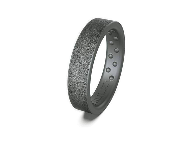 - (1) BULZi Wedding Bands, Massaging Comfort Fit Hammered Finish Silicone Ring with Airflow (Granite Thin Hammered, Size 9 - (5mm Width Band))