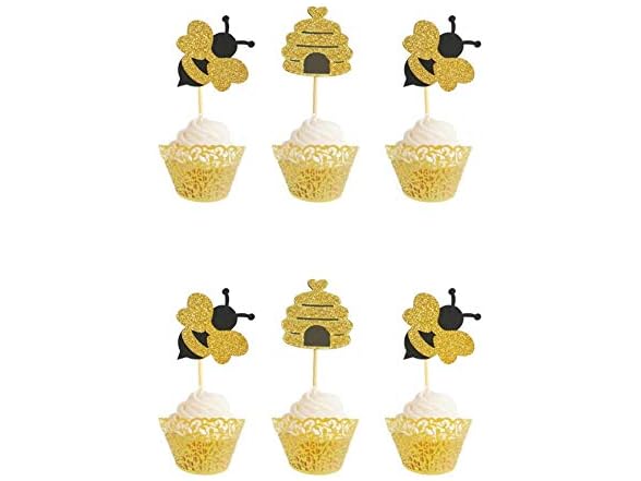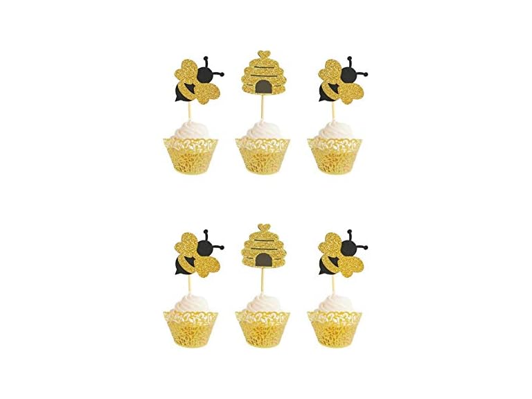 - (1) CIDBEST WallyE Bumble Bee Birthday Party Cupcake Topper in Glitter Bee and Honeycomb Shape, 12 Pack