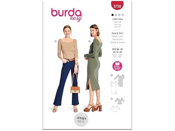 - With this Burda style pattern for a dress and a shirt, you can bring a breath of fresh air to your wardrobe—perfect for sewing beginners; The bodycon dress impresses with its exciting silhouette, wide neckline, and high side slit