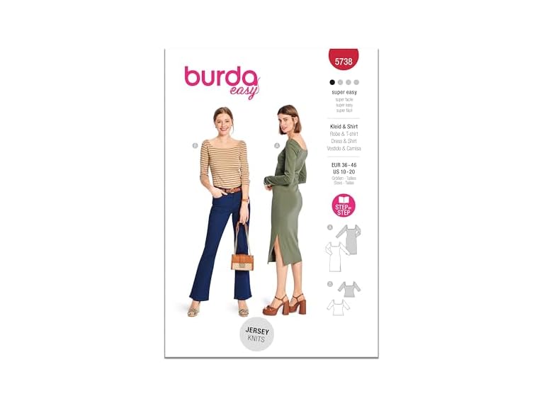 - (1) Burda X05738BURDA Easy to Make Misses' Bodycon Dress and Fitted T-Shirt Sewing Pattern Packet, Design Code B5738, Sizes 10-20 (36-46)