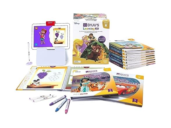 - (1) BYJU’S Learning Kit: Disney, Kindergarten Premium Edition (App + 10 Workbooks) Ages 4-6 - Featuring Disney & Pixar Characters - Learn Letter Sounds, Sight Words & Numbers - Osmo Fire base included
