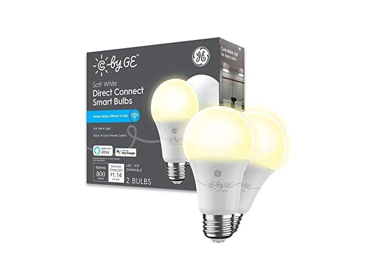 - C by GE A19 Smart LED Light Bulb, 60W Replacement, Bluetooth/Wi-Fi Enabled, Alexa + Google Home Compatible Without Hub, Soft White, 2-Pack (Packaging May Vary)