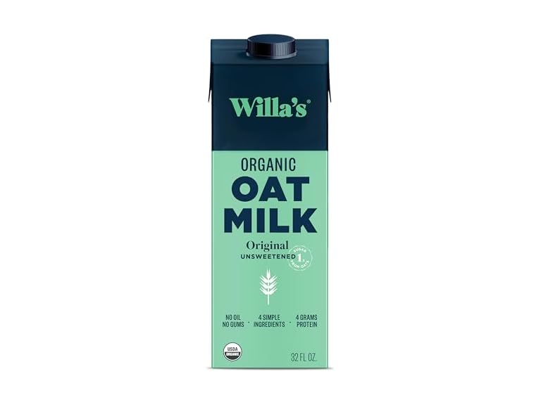 - ORIGINAL UNSWEETENED OATMILK - Willa’s Unsweetened Original is a creamy oat milk with just 4 simple organic ingredients. It is a lactose free, non dairy, nut free, low calorie organic milk for smoothies, vegan cooking, vegan baking, coffee and recipes. No oil. No gums. No added sugar. This healthy oat milk unsweetened is low calorie, no sugar, fat free, and creamy. Great for anyone looking for the healthiest unsweetened plant based whole oats milk or a sugar free oat milk coffee creamer.