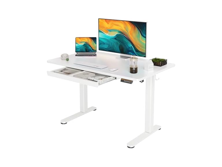 - (1) YDN Standing Desk with Drawers, 48 x 24 Inch Adjustable Height Stand Up Desk, Electric Sit Stand Computer Desk for Home Office, White
