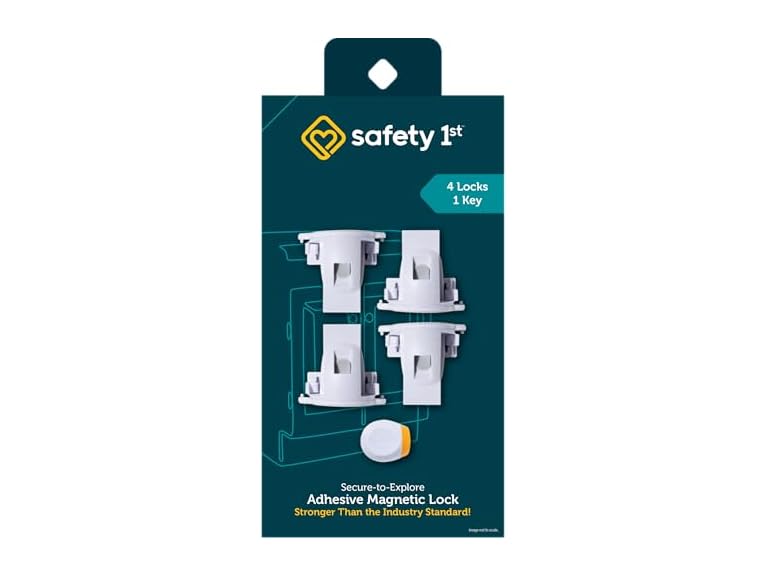 - (1) Safety 1st Adhesive Magnetic Cabinet Locks, Includes 4 Child Locks for Cabinets & Drawers, 1 Key, White