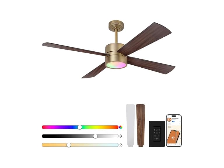 - Remote & APP Control + Timer Function: Easily operate the fan and RGB lighting via remote control or smartphone APP. Set timers, adjust speed or lighting modes, and switch directions—all at your fingertips.