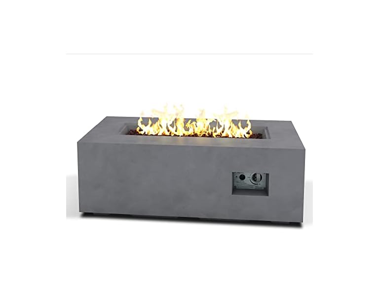 - DURABLE AND STABLE CRAFTSMANSHIP: A simple and elegant rectangle design, this sturdy outdoor propane gas fire pit table features a weather-resistant, made of durable magnesium oxide with a concrete-style finish to have a long lasting color and look beautiful in any backyard setting