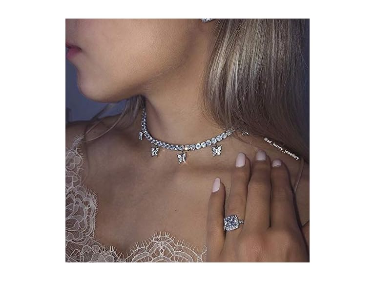 - (1) Doubnine Butterfly Necklace Choker Bling Iced CZ Tennis Chain Jewelry Gift for Women Girls (gold)