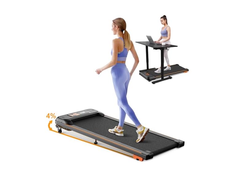 - Treadmill with Incline - Compared with a regular walking pad, our treadmill is adjustable to a 4% incline, creating a condition like a little hill for walking. Specifically designed to shape your hips and legs, with which the effect of fitness and fat-burning can increase by 60%