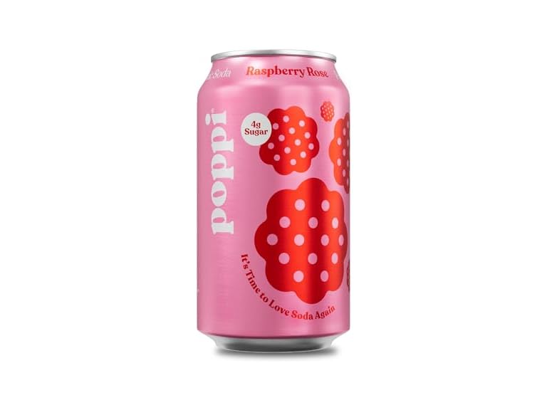 - (1) Poppi Sparkling Prebiotic Soda Beverage with Apple Cider Vinegar, Seltzer Water and Fruit Juice, Raspberry Rose Flavor, 12 oz, Pack of 12